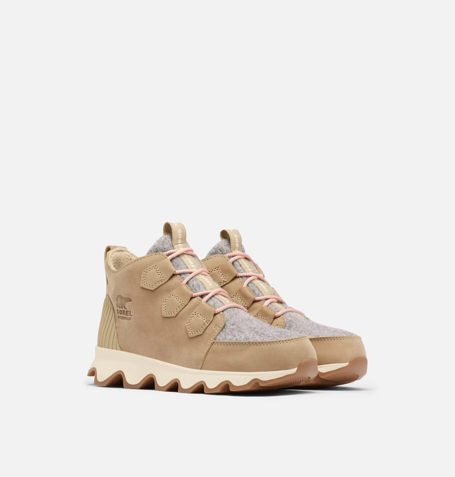 - TIGE : Cuir et feutre imperméables. Construction de type chausson imperméable. Doublure en laine micropolaire. Détail en caoutchouc moulé au talon. Les lacets ne sont pas imperméables.