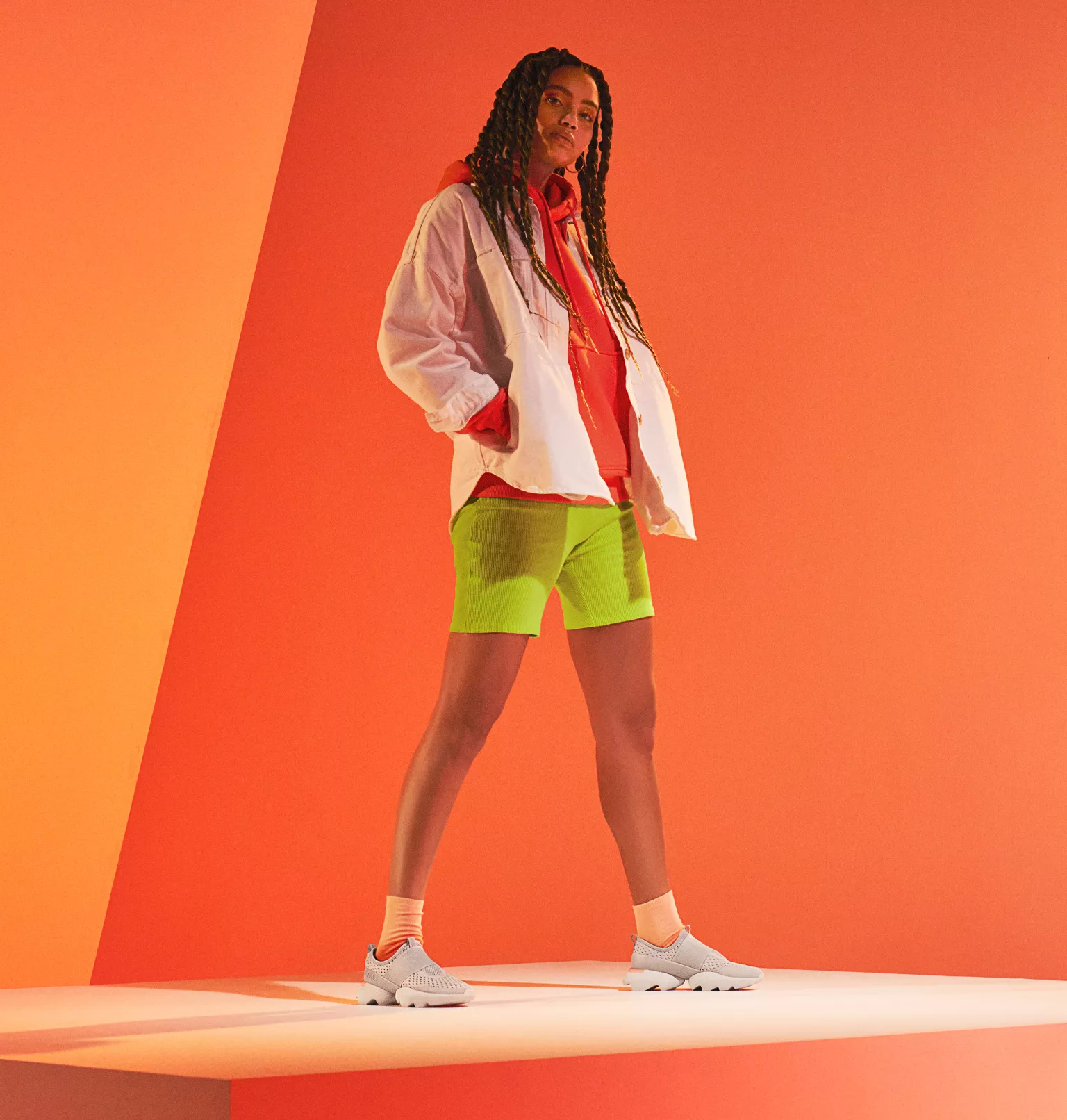 - TIGE : Maille respirante avec renforts en film TPU sans coutures. Bande élastique entourant le milieu du pied pour un maintien ferme. Cuir pleine fleur de chaque côté. Détail réfléchissant en toile sur les tirants au talon et au centre du cou-de-pied.